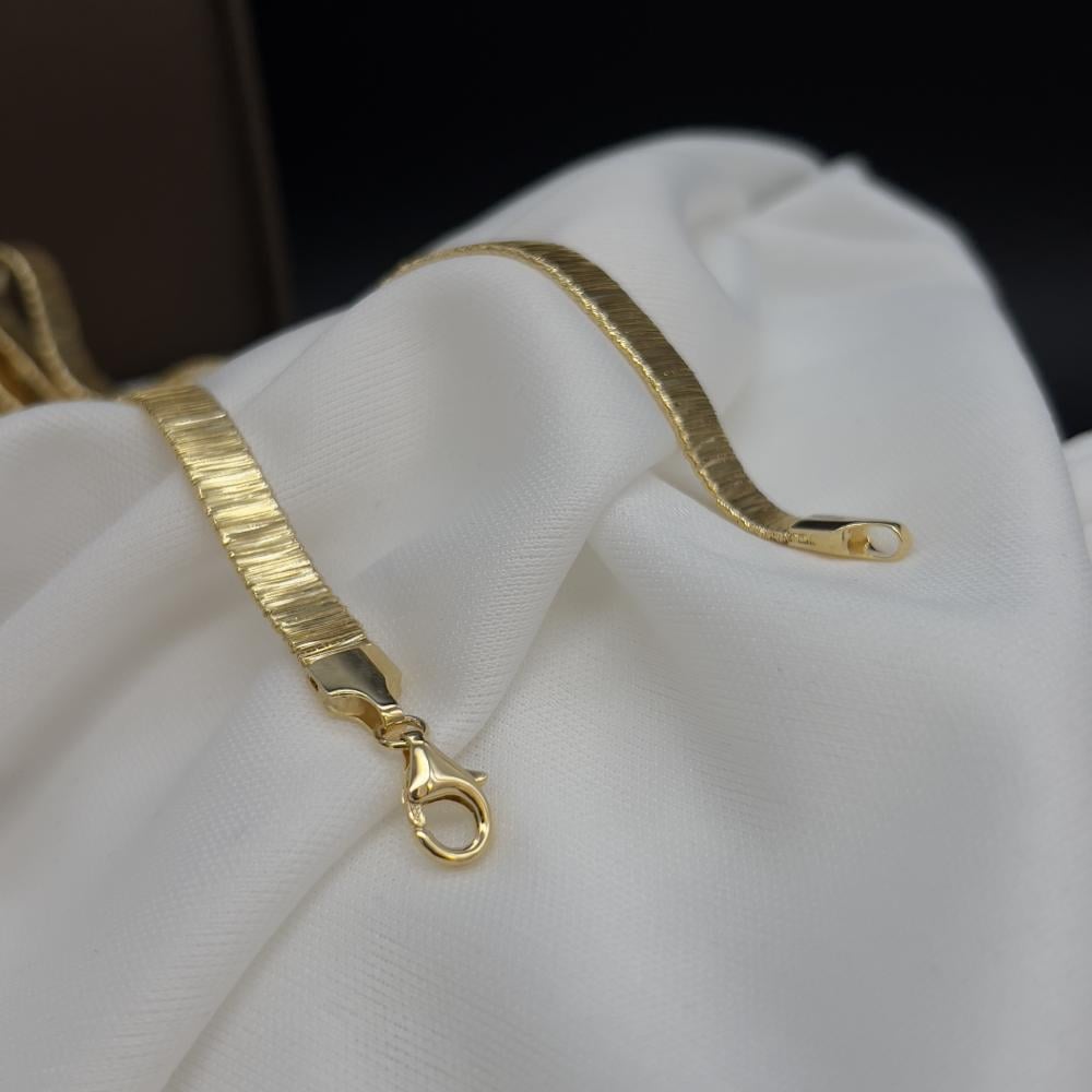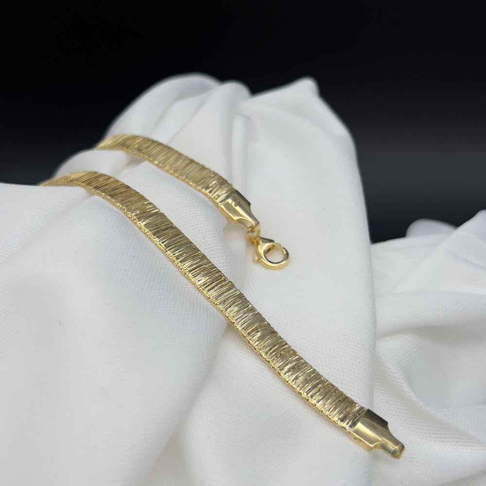 أسوارة ذهب الحرير عيار 18 بوزن 7.2 جرام، تصميم فاخر يجمع بين النعومة والفخامة في قطعة واحدة. تتميز الأسوارة بلمعان الذهب الأصفر النقي مع تصميم انسيابي يشبه خيوط الحرير