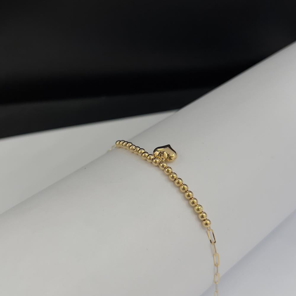 اسوارة ذهب عيار 18 ناعمة تصميم قلب مع كرات