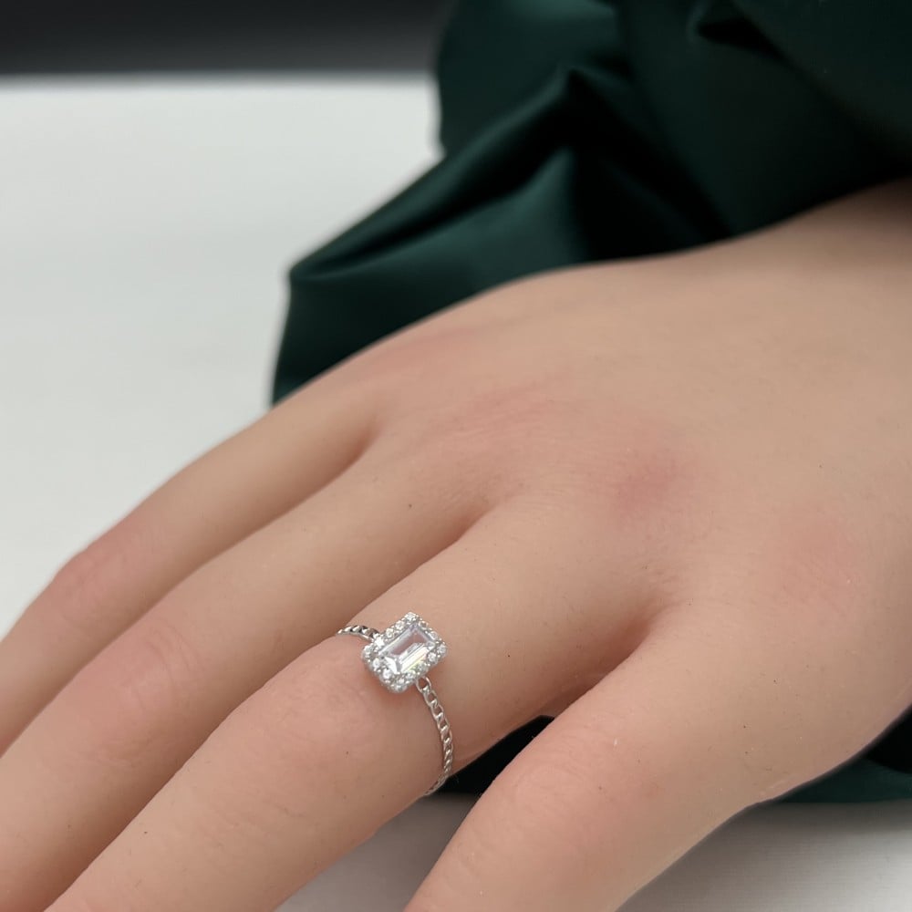خاتم ذهب ابيض عيار 18 وزن 0.8 جرام تصميم باجيت