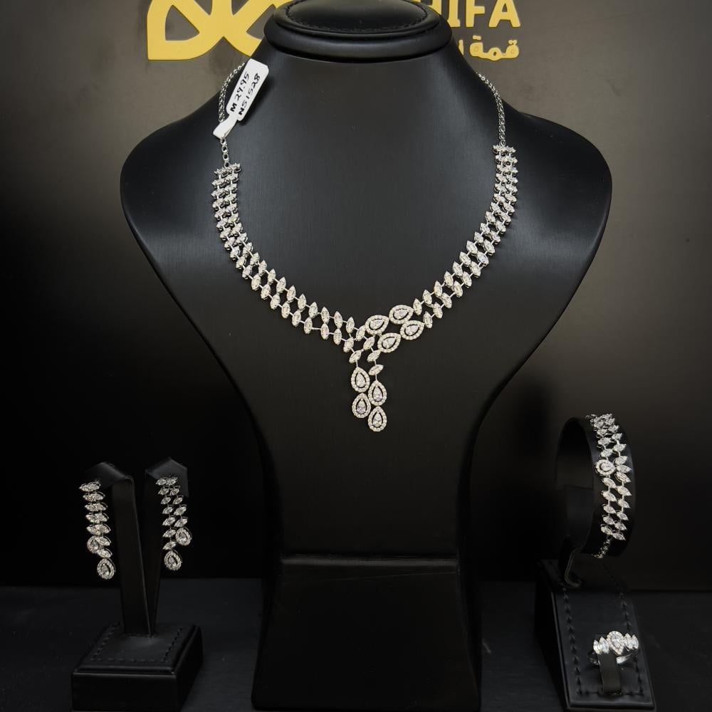 طقم شبكة عروس ذهب ابيض عيار 18 بوزن 29.95 جرام، تصميم فاخر يبرز الأناقة.
